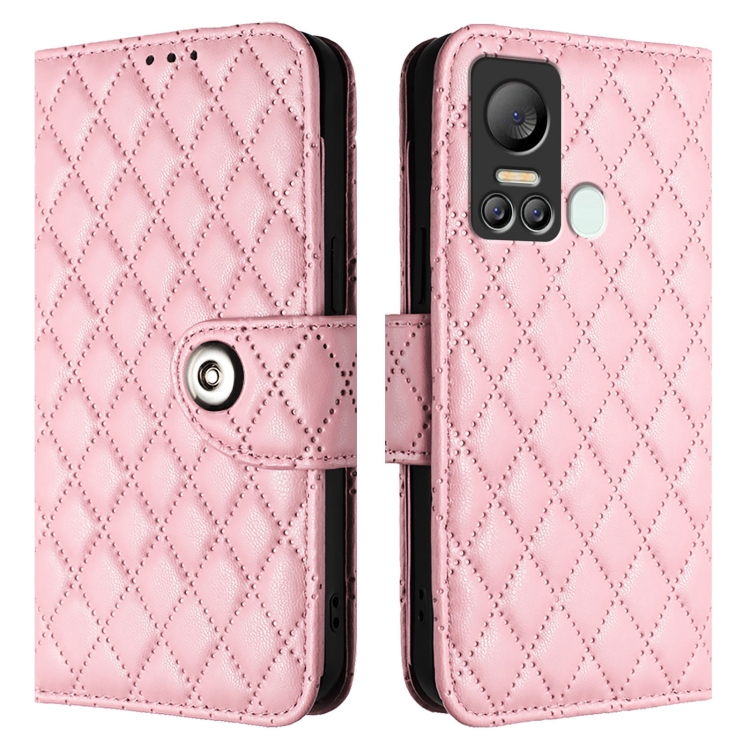 Funda de Cuero con Tapa y Textura Rombal para Itel S18/Vision 5 con Cordón (Rosa)