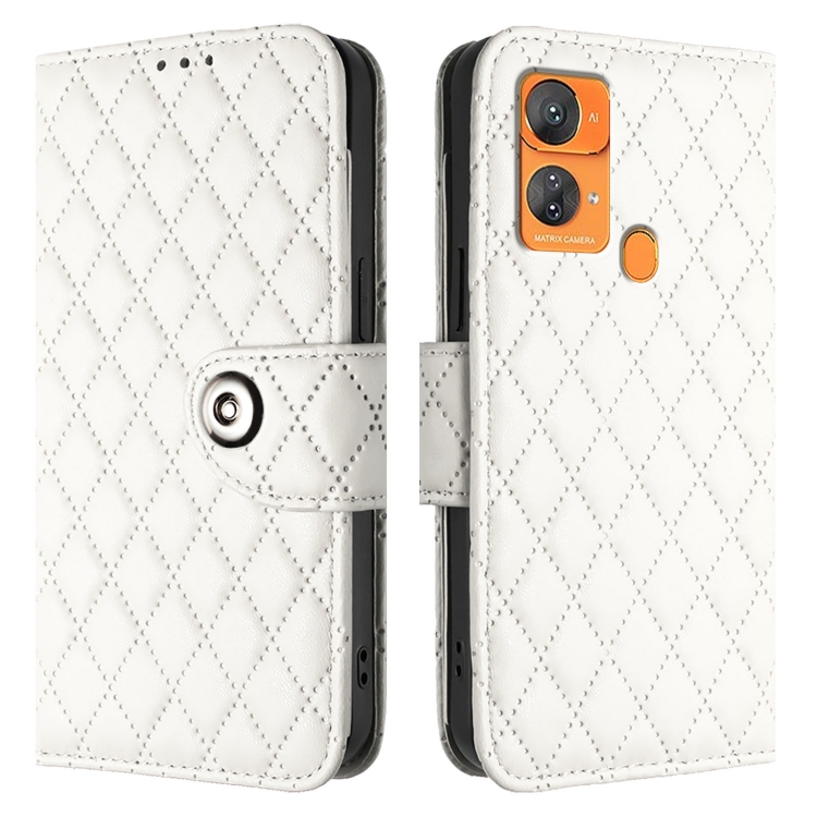 Funda de Cuero con Tapa y Textura Rombal para Oukitel C33 con Cordón (Blanco)
