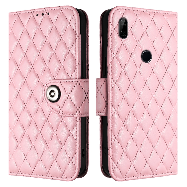 - 1x Funda de Cuero con Tapa y Textura Rómbica para Huawei Enjoy 10 Plus con Cordón (Rosa)