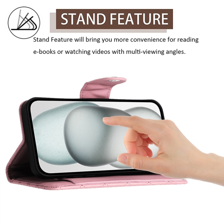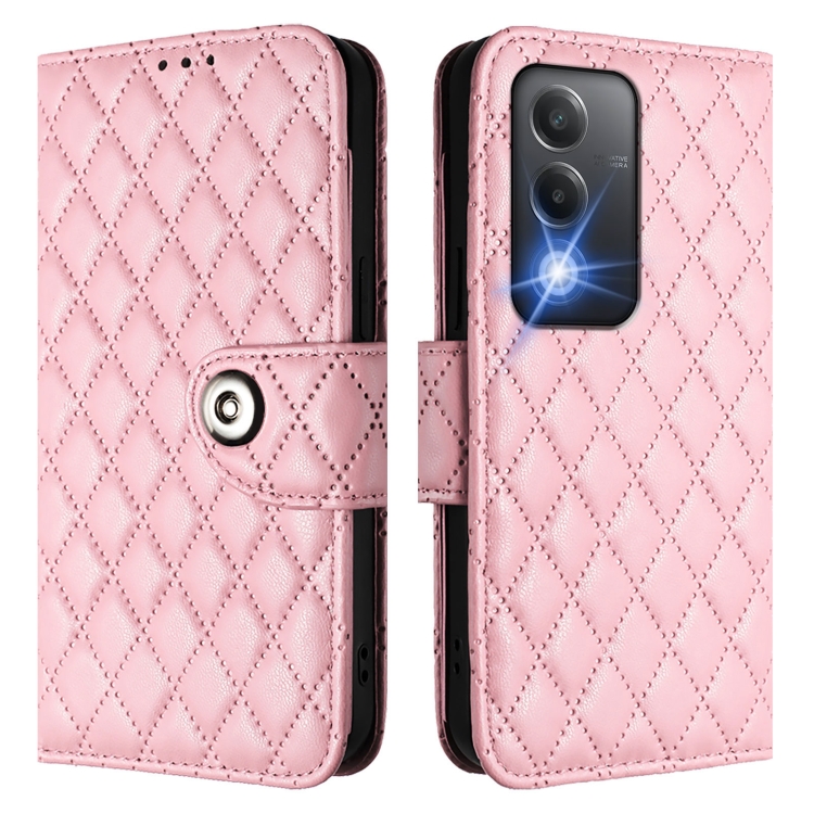 Funda de Cuero con Tapa y Textura Rómbica para Teléfono Oppo A80 5G Eu con Cordón (Rosa)