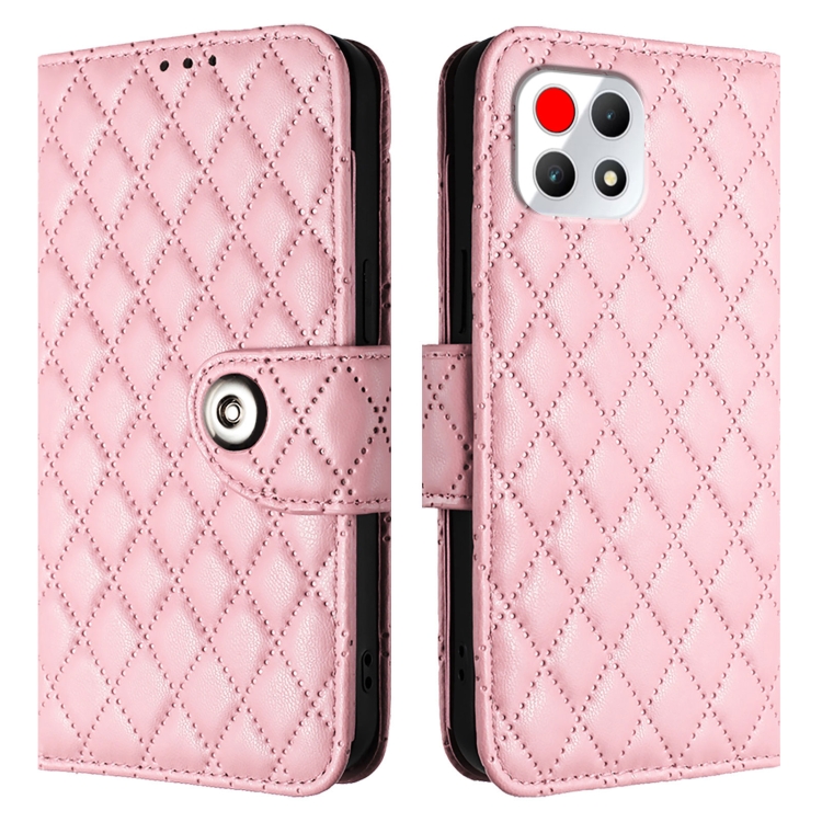 Funda de Cuero con Tapa y Textura Rómbica para T-Mobile Revvl 7 5G con Cordón (Rosa)