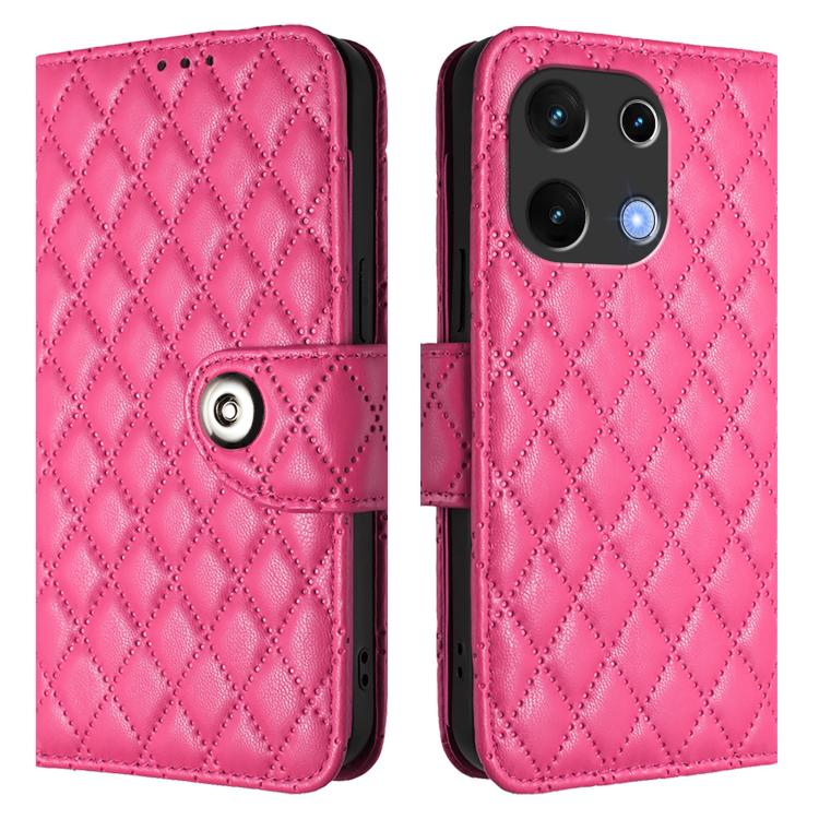 Funda de Cuero con Tapa y Textura Rómbica para Teléfono Umidigi Note 100 con Cordón (Rosa y Rojo)