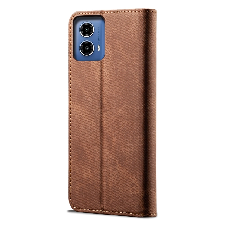 Funda de Cuero con Tapa y Textura Vaquera para Motorola Moto G35 (Marrón)