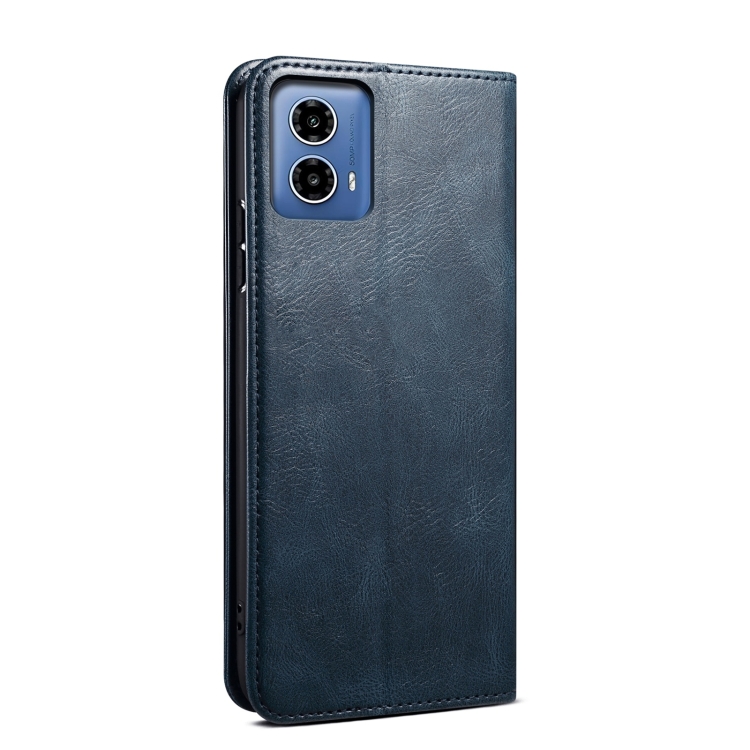 Funda de Cuero Crazy Horse con Cera de Aceite para Motorola Moto G34 5G y G45 5G (Azul)