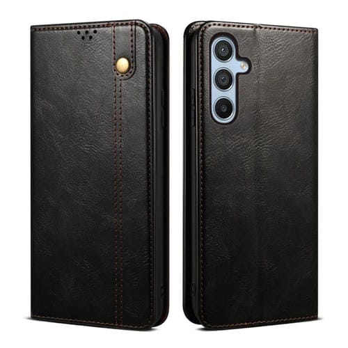 Funda de Cuero Samsung Galaxy A36 Textura Crazy Horse Cera de Aceite (Negro)