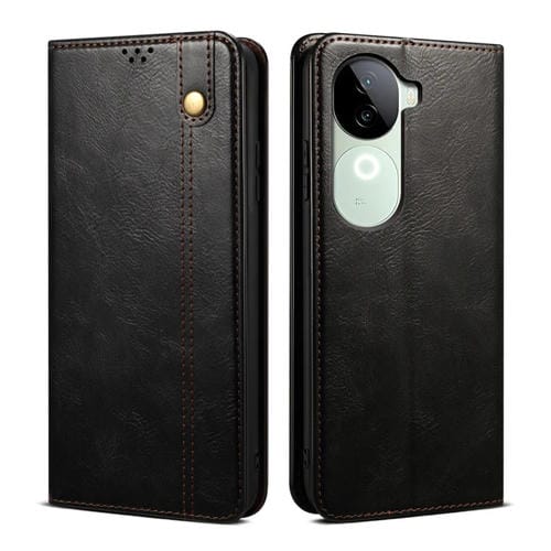 Funda de Cuero con Textura Crazy Horse y Cera de Aceite para Vivo V40E 5G India/Iqoo Z9S 5G (Negra)