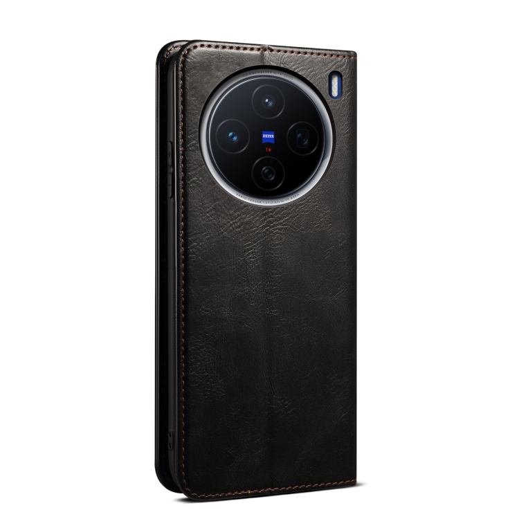Funda de Cuero con Textura Crazy Horse y Cera de Aceite para Vivo X200 Pro Mini (Negra)
