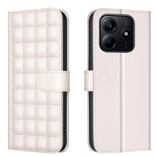 Funda de Cuero con Textura Cuadrada para Redmi Note 14 4G (Beige)