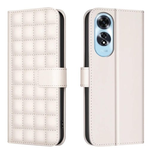 Funda de Cuero con Textura Cuadrada para Teléfono Oppo A60 4G (Beige)