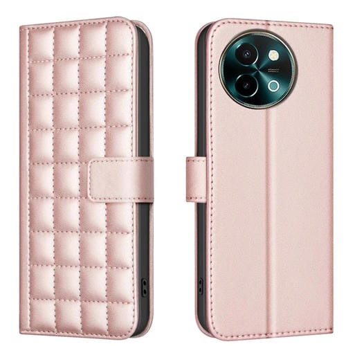 Funda de Cuero con Textura Cuadrada para Vivo Y38 5G/Y200I 5G (Oro Rosa)