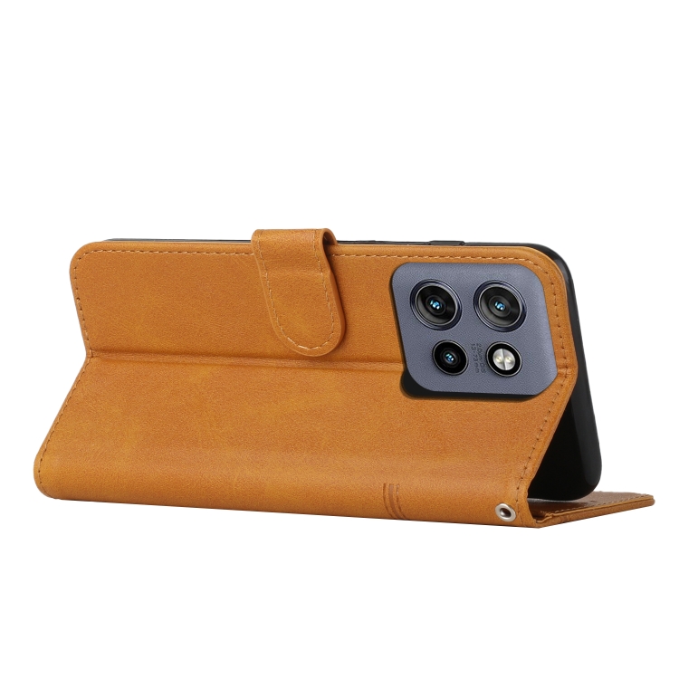 Funda de Cuero Textura de Becerro con Hebilla para Motorola Edge 50 Neo (Amarillo)