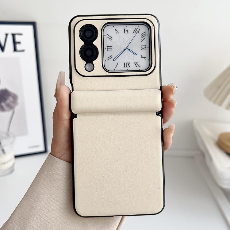 Funda de Cuero para Huawei Nova Flip con Textura y Eje Magnético Integrado (Beige)