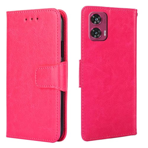 Funda de Cuero con Textura de Cristal para Motorola Edge 50 Fusion 5G (Rosa Rojo)