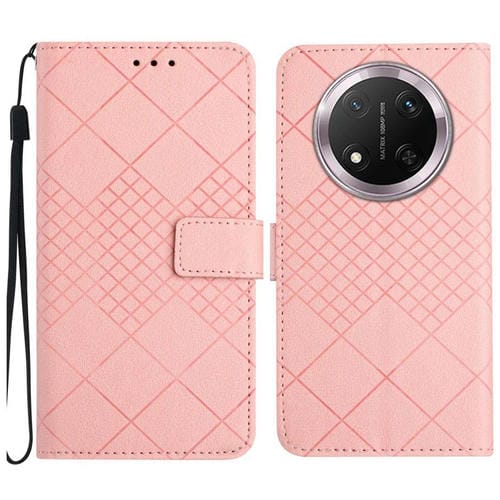 Funda de Cuero con Textura de Cuadrícula Rombal para Honor X9C (Rosa)