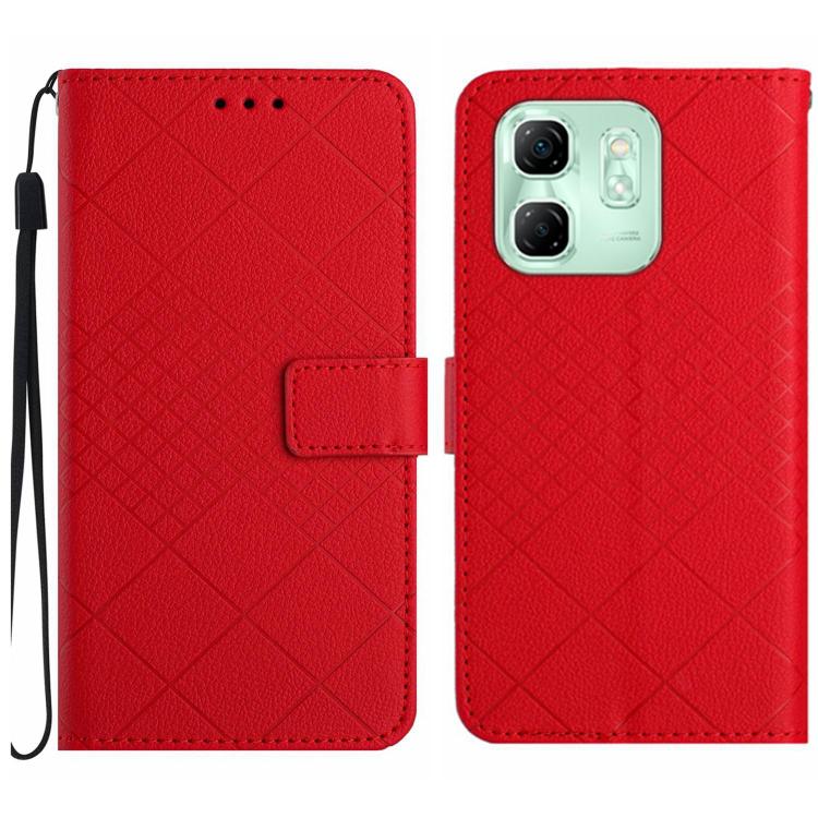 Funda de Cuero con Textura de Cuadrícula Rómbica para Infinix Hot 50I 4G (Rojo)
