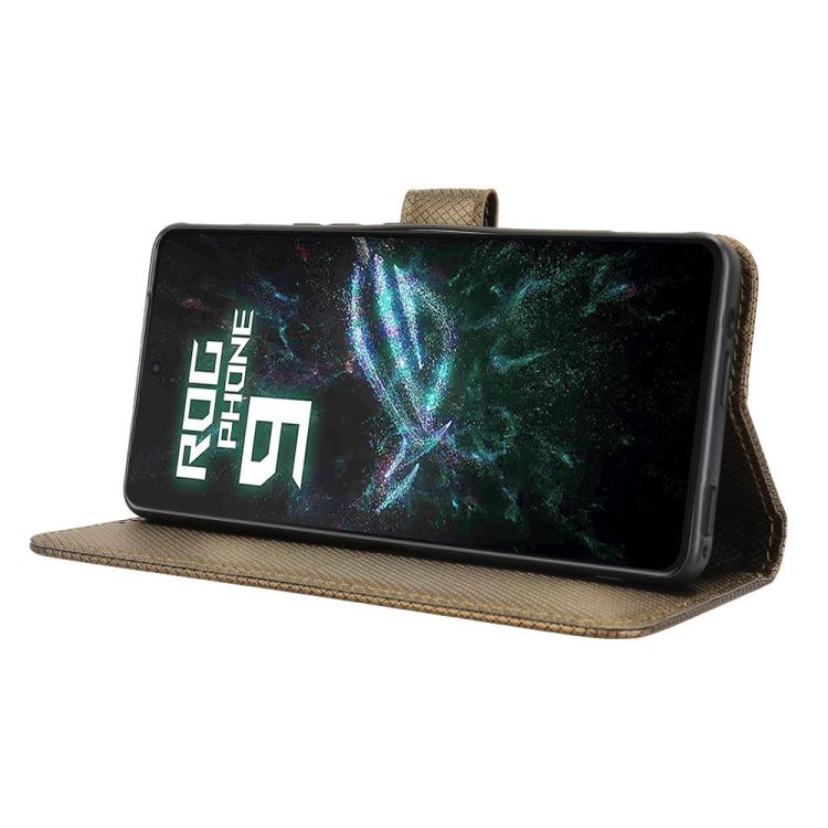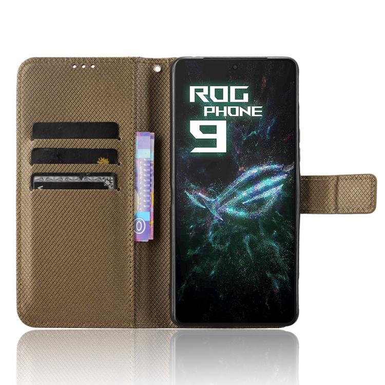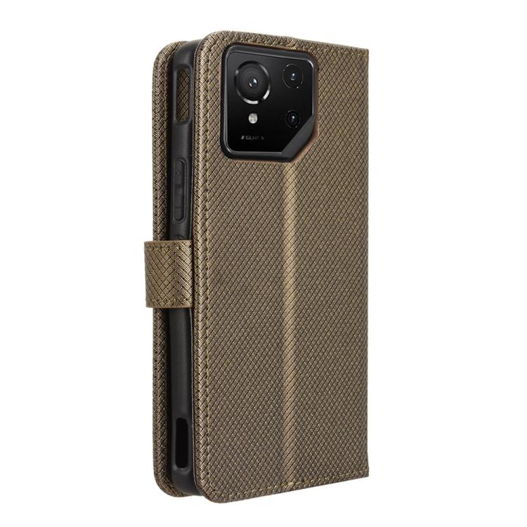 Funda de Cuero con Textura de Diamante para Asus Rog Phone 9 y 9 Pro (Marrón)