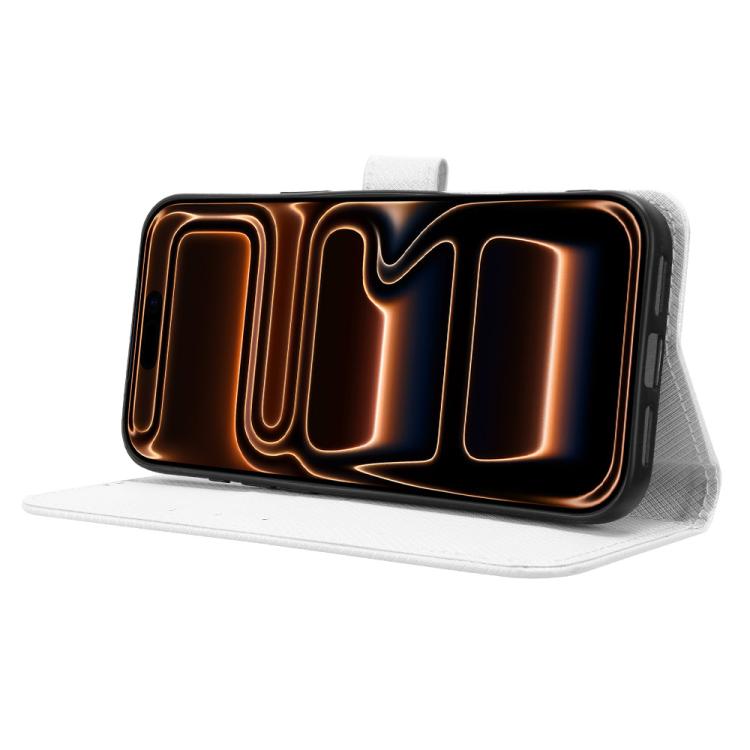 Funda de cuero con textura de diamante para iPhone 17 Pro Max (blanca)