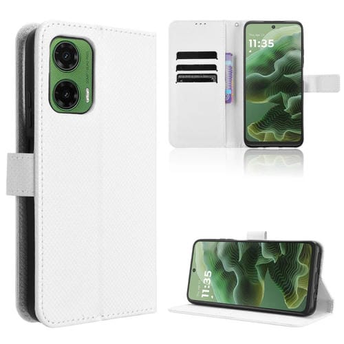 Funda de Cuero con Textura de Diamante para Motorola Moto G35 5G (Blanca)