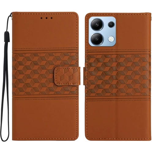 Funda de Cuero con Textura de Diamante para Redmi Note 13 4G (Marrón)