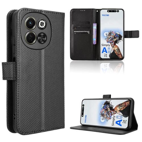 Funda de Cuero para Tecno Pova 6 Neo 5G y Spark 30 5G con Textura de Diamante (Negro)
