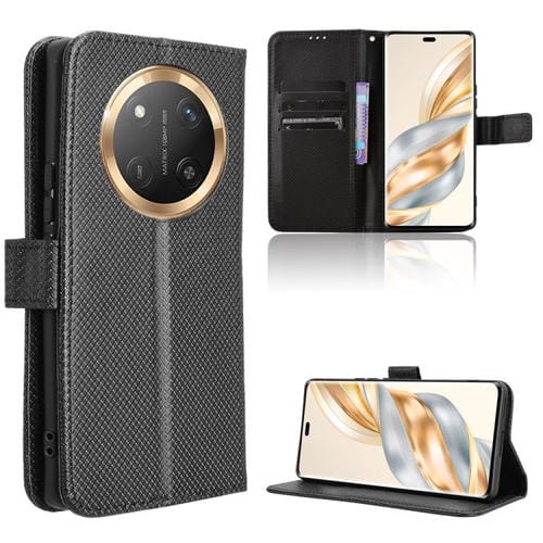 Funda de Cuero con Textura de Diamante para Honor X60 Pro 5G y X9C 5G (Negra)