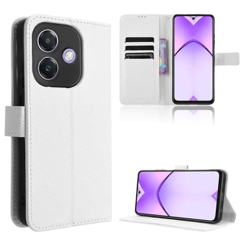 Funda de Cuero con Textura de Diamante para Oppo A3X 5G (India) (Blanco)