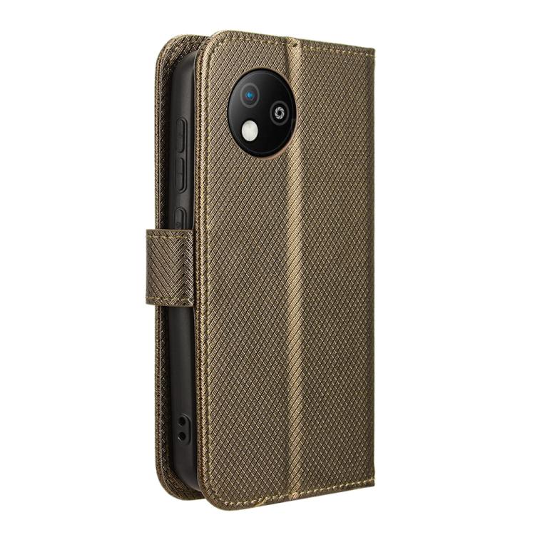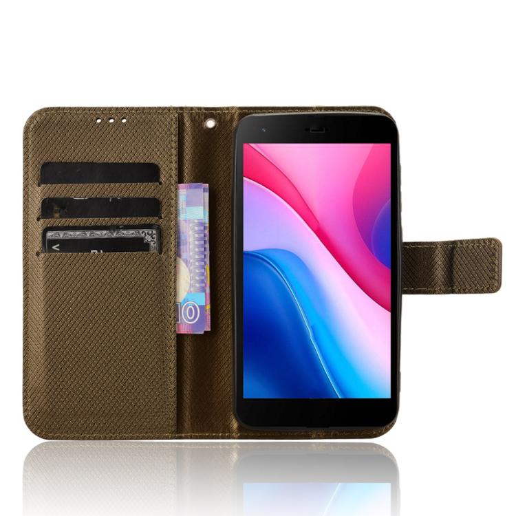 Funda de Cuero Textura de Diamante para ZTE Blade A35 Lite (Marrón)
