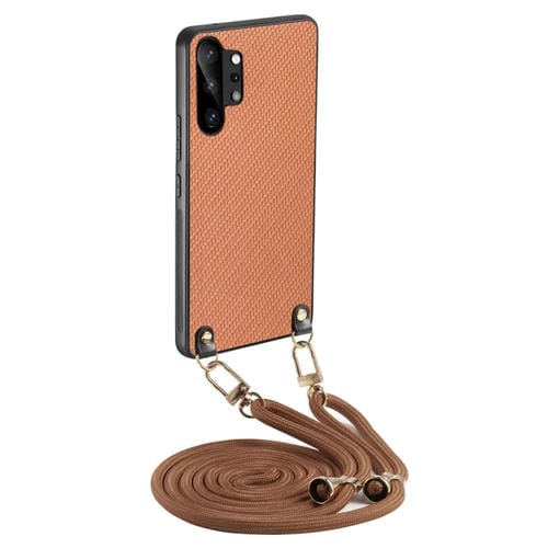Funda Cuero Textura Fibra Carbono Samsung Galaxy Note10+ con Correa Cruzada (Marrón)