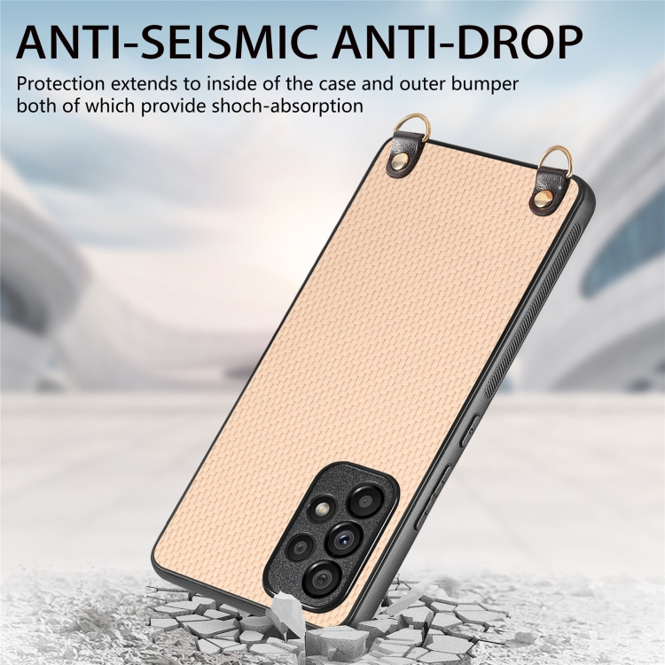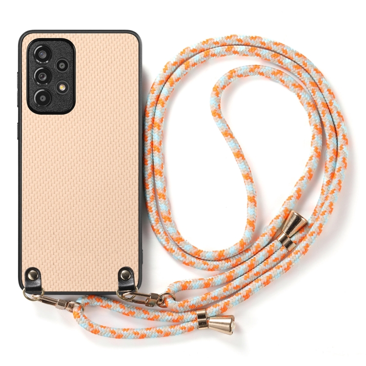 Funda Cuero Samsung Galaxy S20 FE Textura Fibra de Carbono con Correa Cruzada (Caqui)