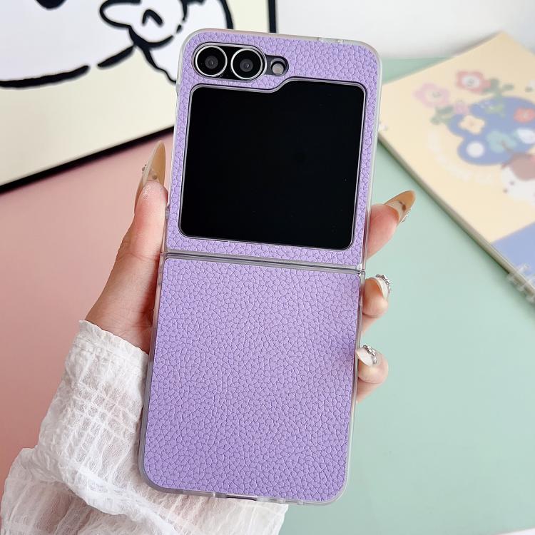 Funda de cuero con textura de lichi transparente para Samsung Galaxy Z Flip5 (morado)