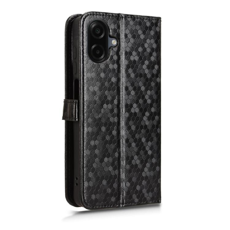 Funda de cuero con textura de lunares y panal para Samsung Galaxy A07 4G (negra)