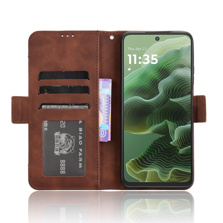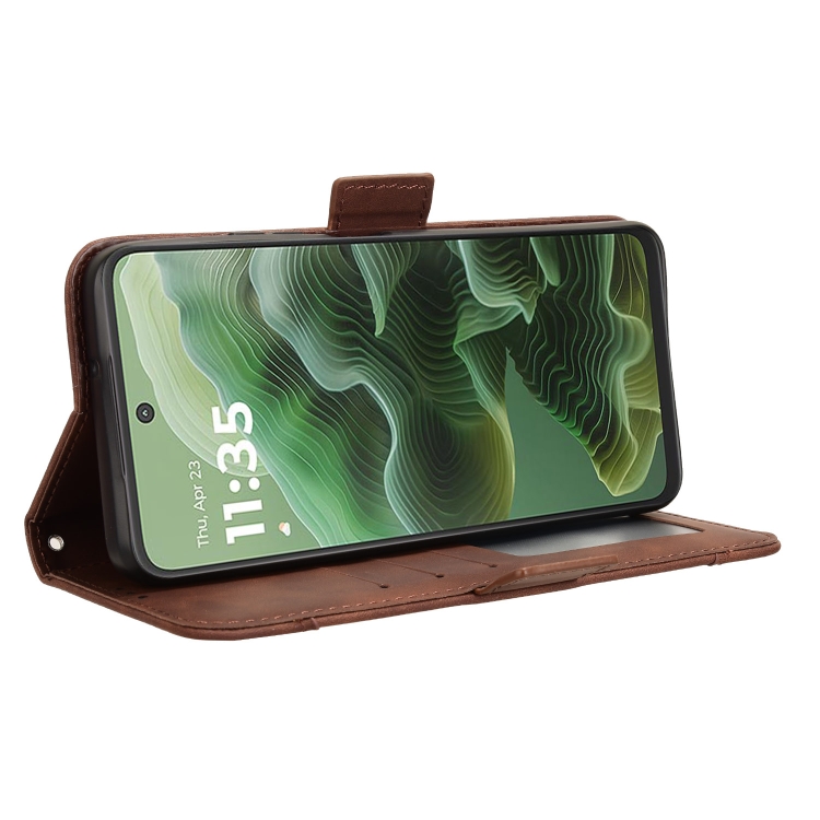 Funda de Piel con Textura de Becerro y Ranuras para Tarjetas Motorola Moto G35 5G (Marrón)