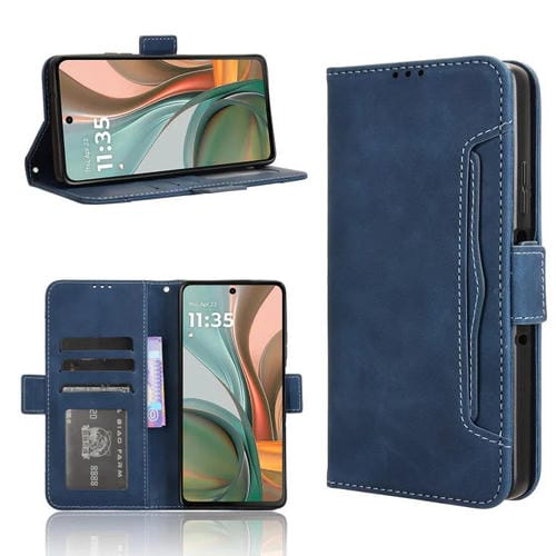 Funda de Piel con Textura de Becerro y Ranuras para Tarjetas para Motorola Moto G75 5G (Azul)
