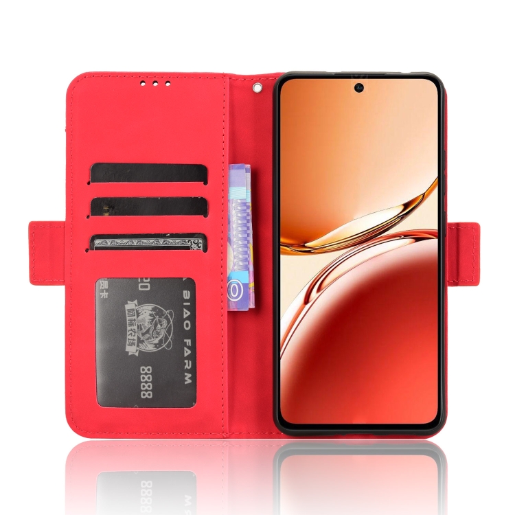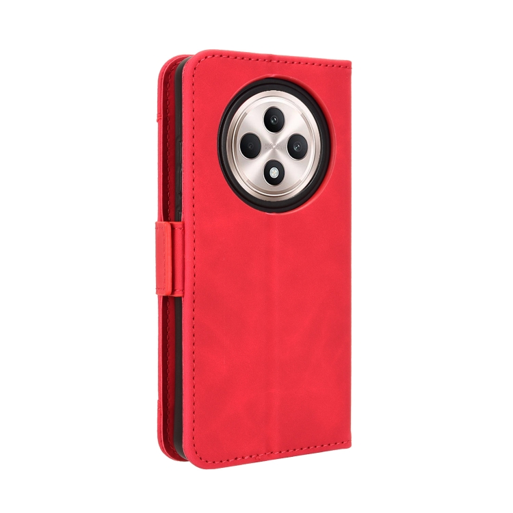 Funda de Piel con Textura de Becerro y Ranuras para Tarjetas para Oppo Reno12 F 5G (Roja)