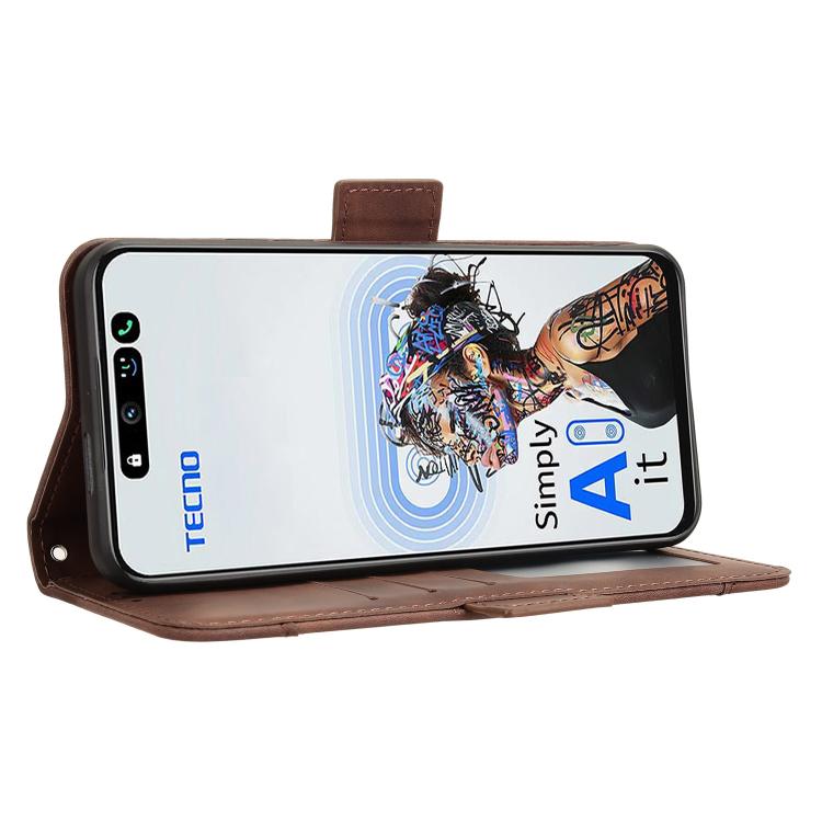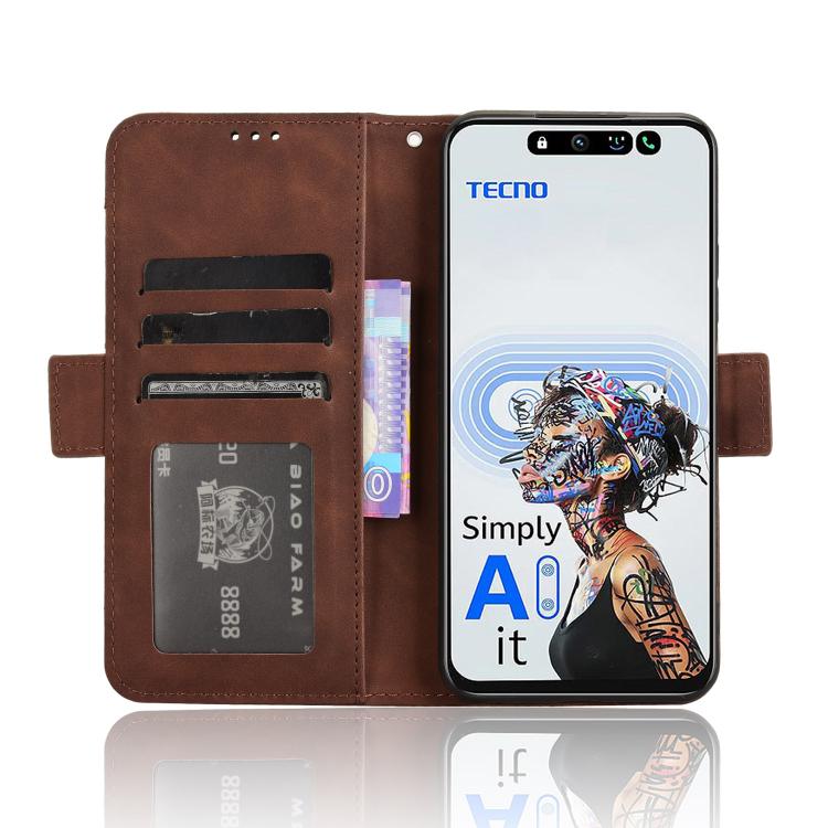 Funda de Cuero Piel de Becerro para Tecno Pova 6 Neo 5G Spark 30 5G con Ranuras (Marrón)