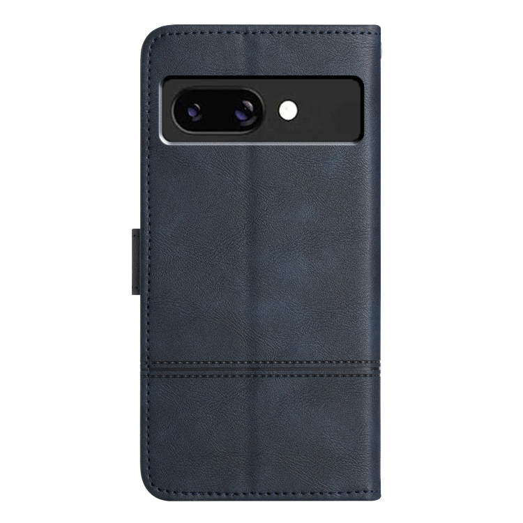 Funda cuero textura piel de vaca con costuras para Google Pixel 9A (Azul Oscuro)