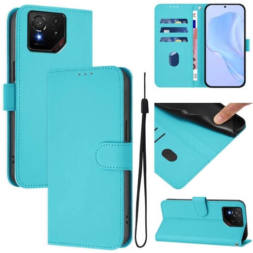 Funda de Cuero con Textura de Piel y Cordón para Asus Rog Phone 9/9 Pro (Azul Lago)