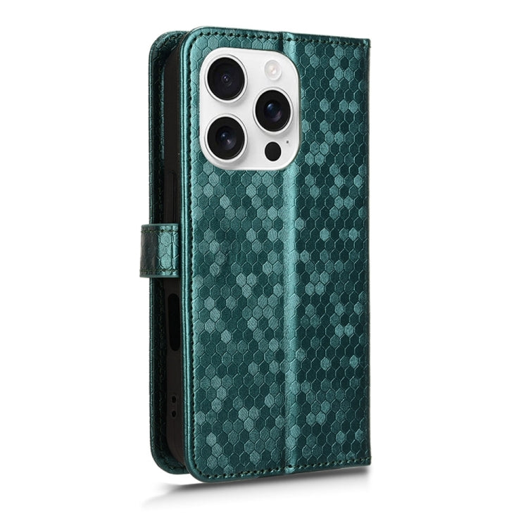 Funda de Cuero iPhone 16 Pro Textura Puntos Panal (Verde)