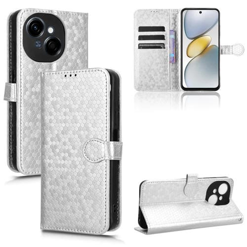 Funda de Cuero para Tecno Spark Go 2025 y Spark Go 1 con Textura de Puntos en Panal (Plateada)