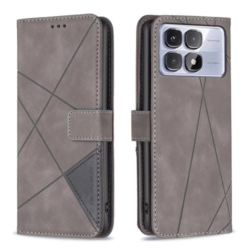 Funda de Cuero con Textura de Rombos y Hebilla Magnética para Redmi K70 Ultra (Gris)