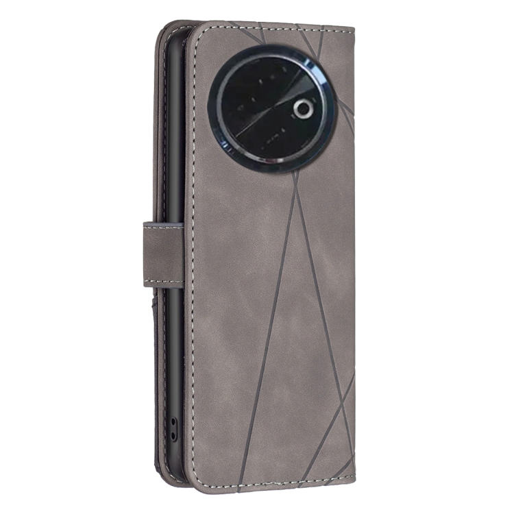 Funda de Cuero para Tecno Spark 30C con Textura de Rombos y Hebilla Magnética (Gris)