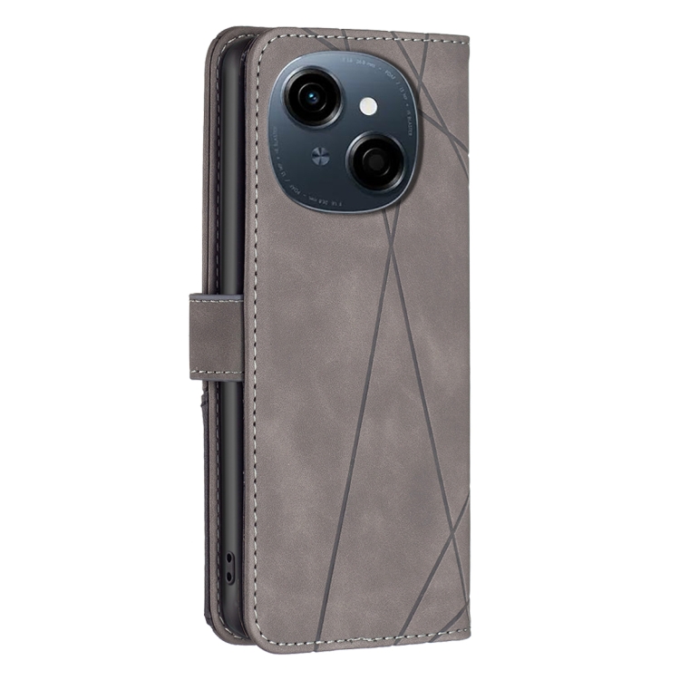 Funda de Cuero para Tecno Spark Go 1 Pop 9 con Textura de Rombos y Hebilla Magnética (Gris)