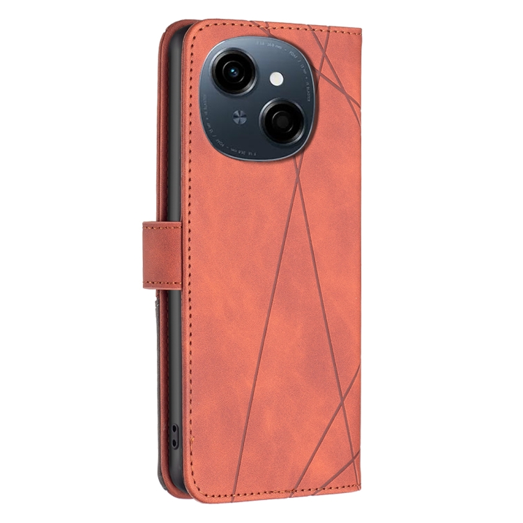 Funda de Cuero para Tecno Spark Go 1 y Pop 9 con Textura de Rombos y Hebilla Magnética (Marrón)