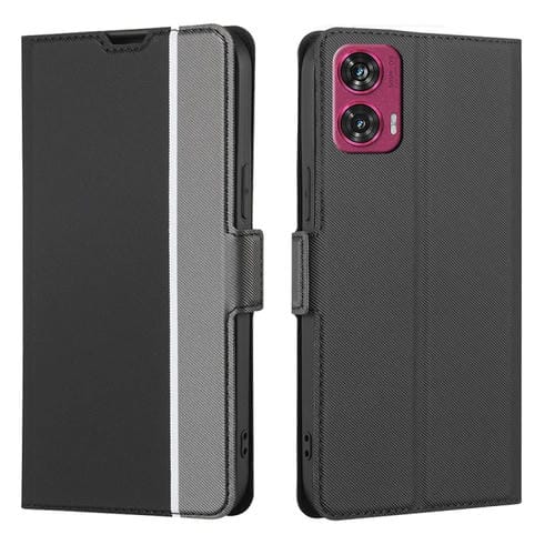 Funda de Cuero con Textura de Sarga y Botones Laterales para Motorola Edge 50 Fusion 5G (Negro)