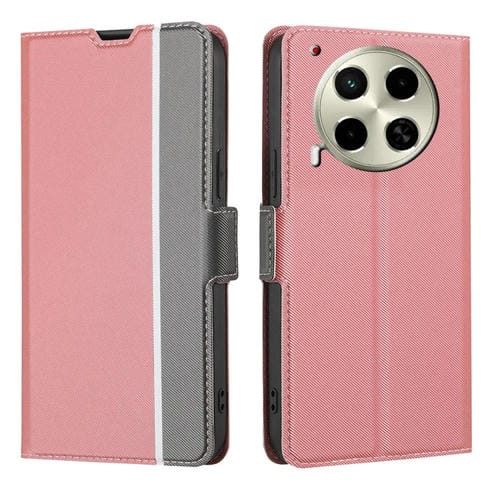 Funda de Cuero para Tecno Camon 30 con Textura de Sarga y Botones Laterales (Rosa)