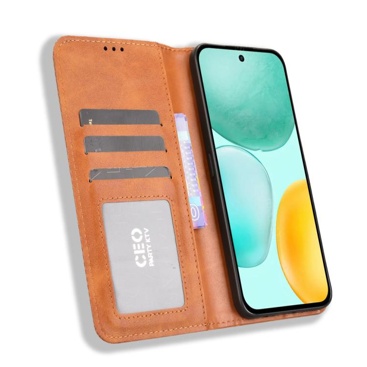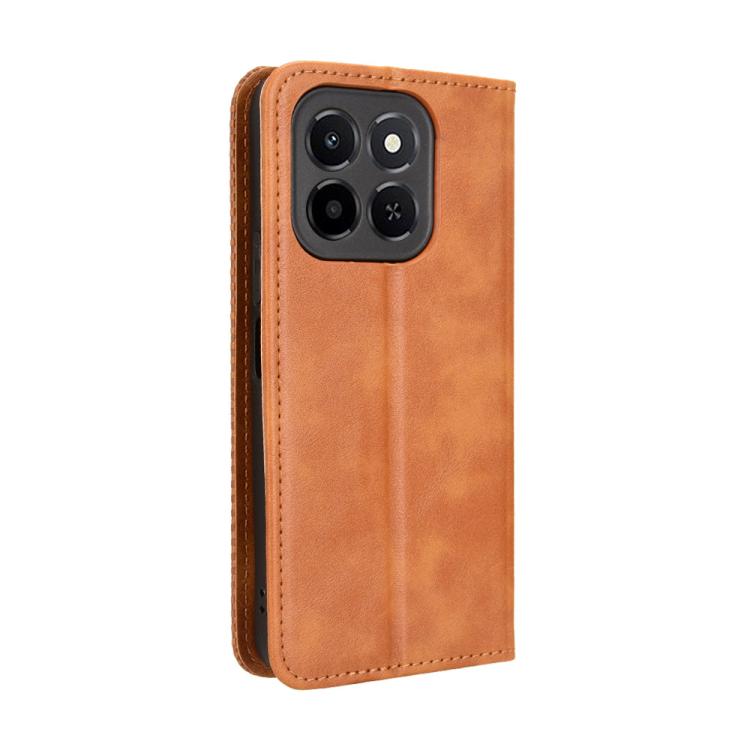 Funda de cuero con textura retro y hebilla magnética para Honor X6c 4G (marrón)