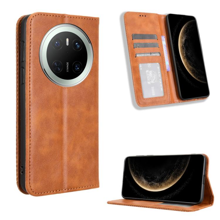 Funda de Cuero Huawei Mate 70 con Textura Retro y Hebilla Magnética (Marrón)