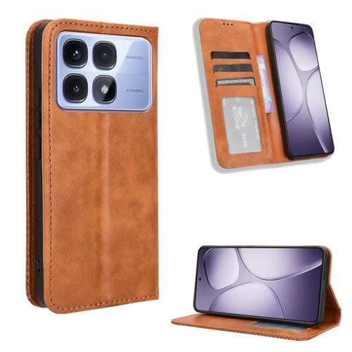 Funda de Cuero con Textura Retro y Hebilla Magnética para Redmi K70 Ultra (Marrón)