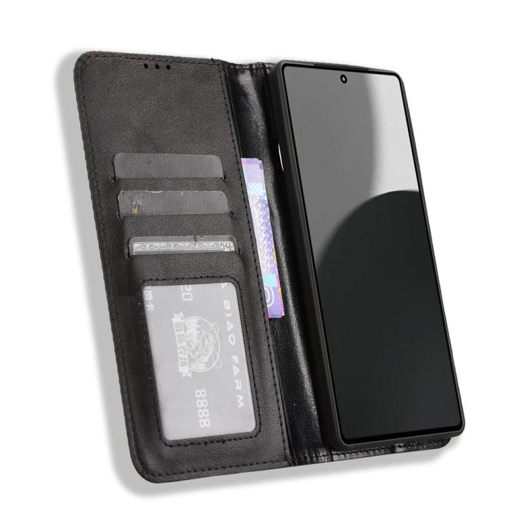 Funda Cuero Sharp Aquos R9 Pro Textura Retro Hebilla Magnética (Negro)