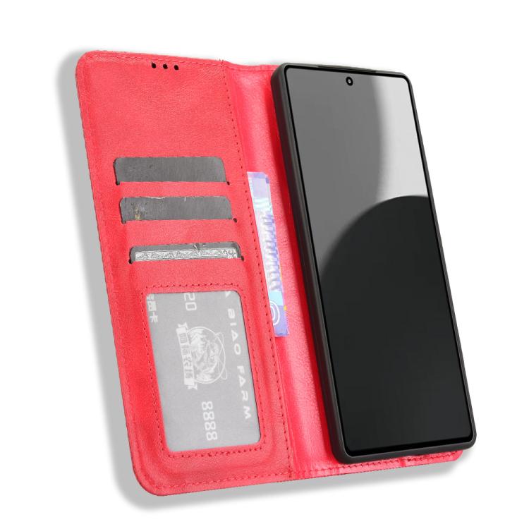Funda Cuero Textura Retro Hebilla Magnética Sharp Aquos R9 Pro (Rojo)